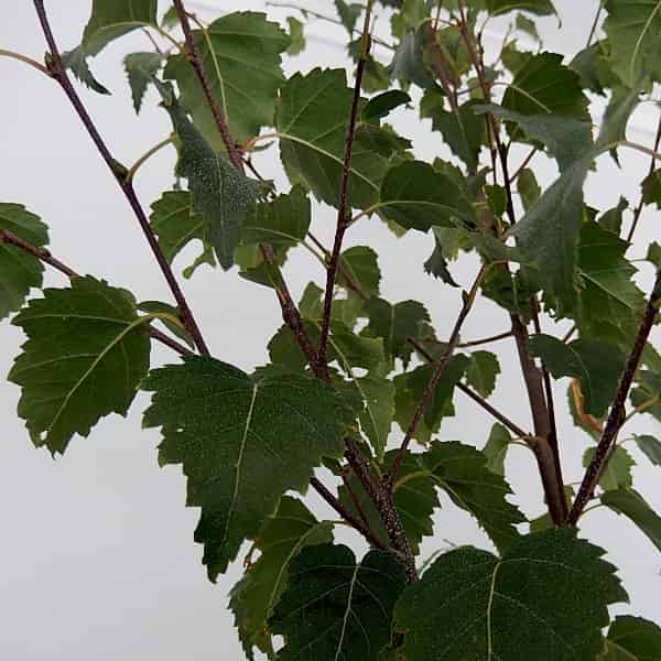 Known for its white trunk, the bark is brown when young but gradually develops the silvery-white papery-bark when mature.