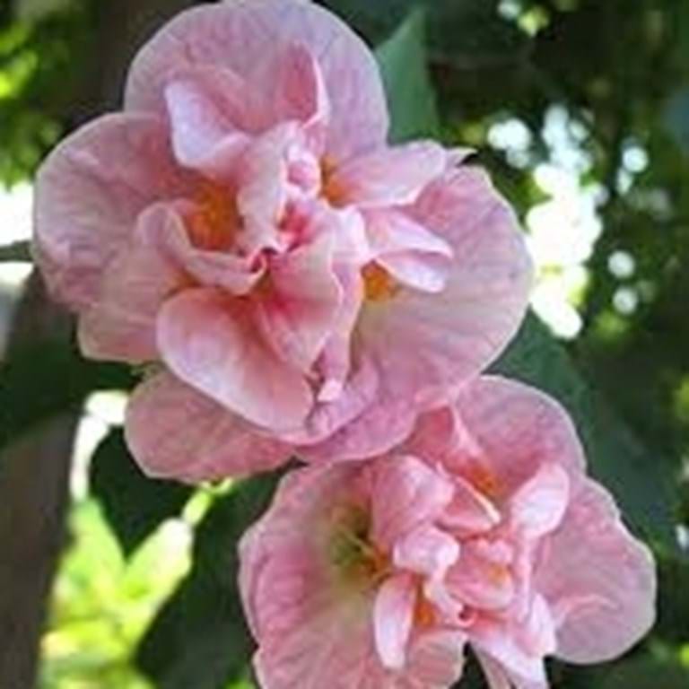 It has ruffled, double mid pink flowers forming along the upright branches.