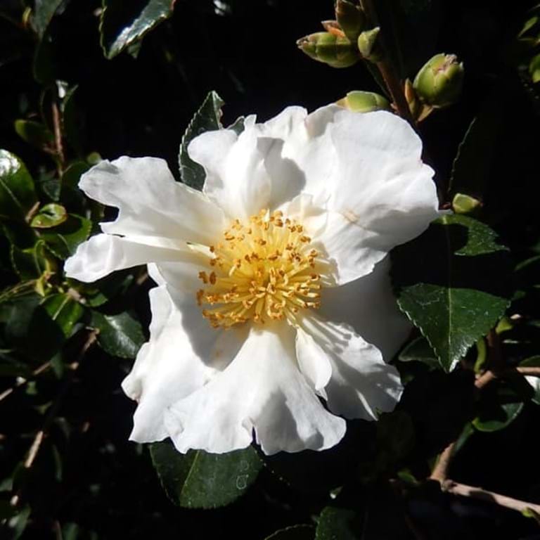 This very popular sasanqua camellia can be used for espalier, grown as a formal or informal hedge or just as an attractive garden plant.