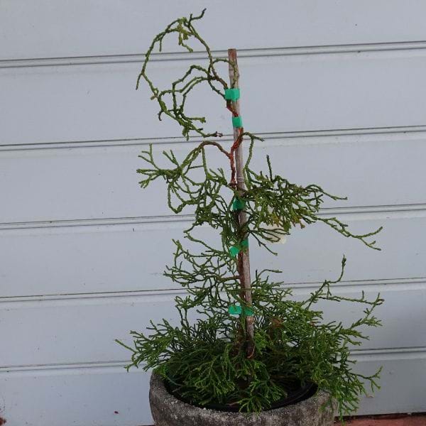 This cultivar of the "Hinoke Cypress" has totally different foliage than the other cultivars. Instead of being fan-shaped, it is twisted and thread-like.