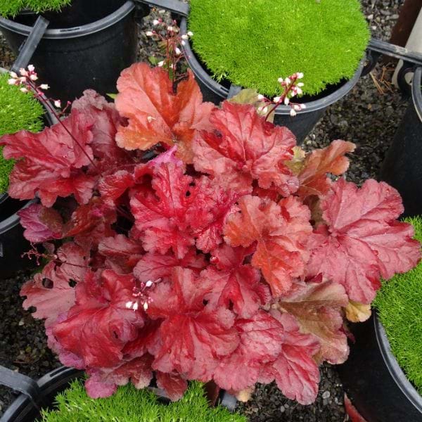 This brilliant Heuchera has the reddest leaves ever.