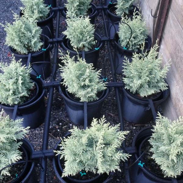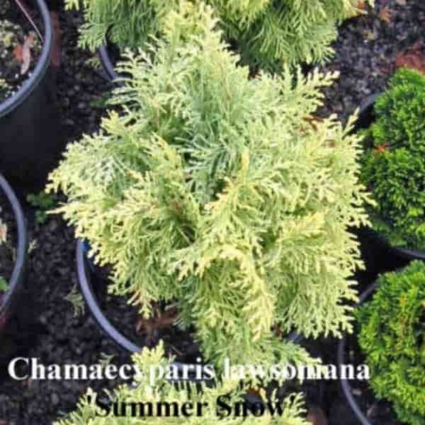 The stunning new growth of this "Lawson Cypress" is snow-white in colour.