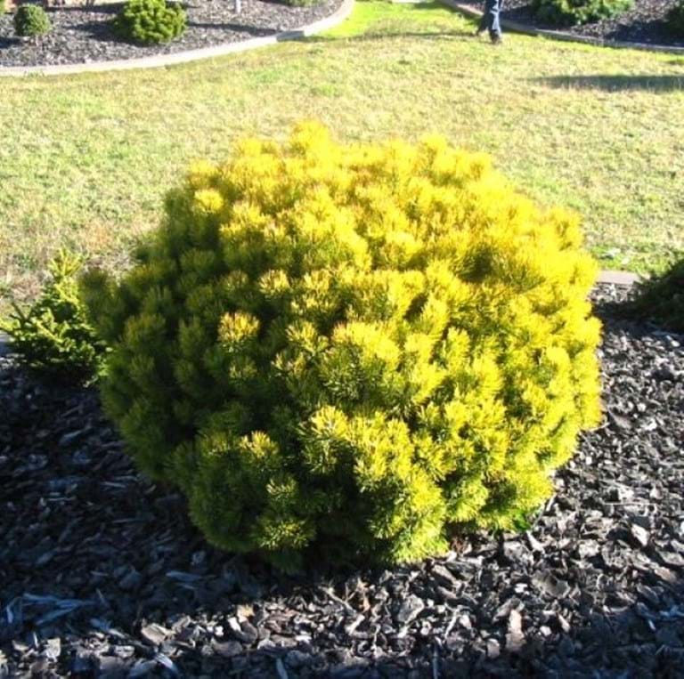When grown in a sunny position the needles are a yellow-green colour in the warmer months, then turning bright yellow in winter.
