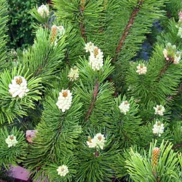 A dwarf pine with dark green needles.
