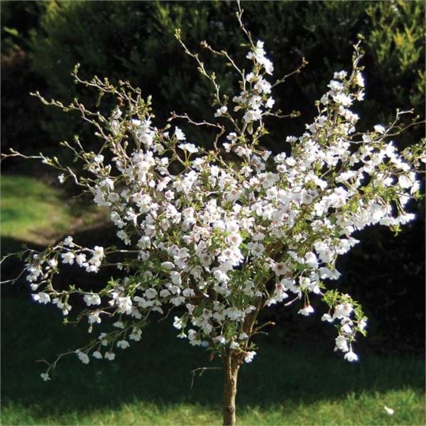 Prunus incisa 'Kojo-no-mai' eventually grows to be a medium sized, densely branching, rounded shrub.