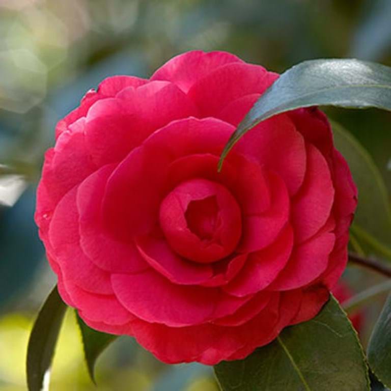 It produces medium-sized, double, formal blooms which are deep scarlet red and appear late in winter to spring.