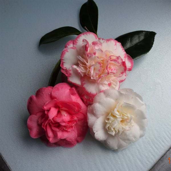 The unusual bi-coloured flowers have creamy-white petals edged in raspberry.