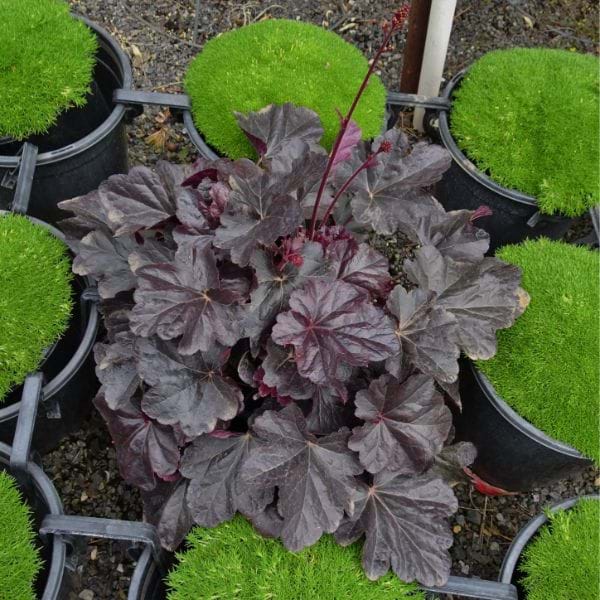 This Heuchera has smooth jet-black leaves, probably the darkest form to date.