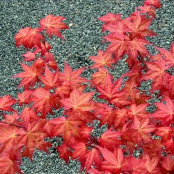 The small leaves emerage in a flaming crimson colour, covering the entire plant.