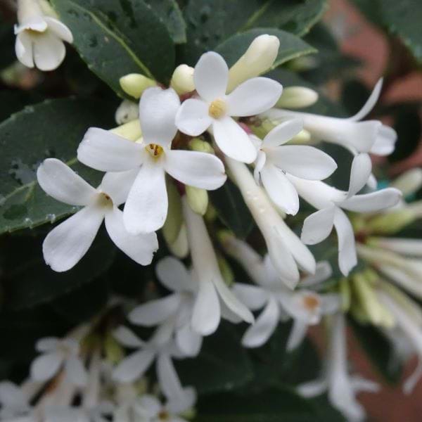 It produces masses of tubular white and sweetly fragrant flowers in spring.