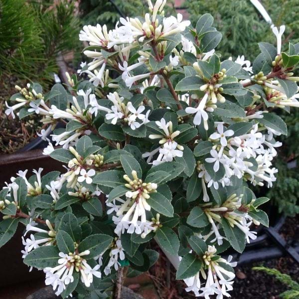This is a dense bushy form of Osmanthus with small dark foliage