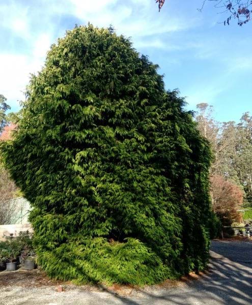 A broadly conical specimen, ideal for a central lawn position.